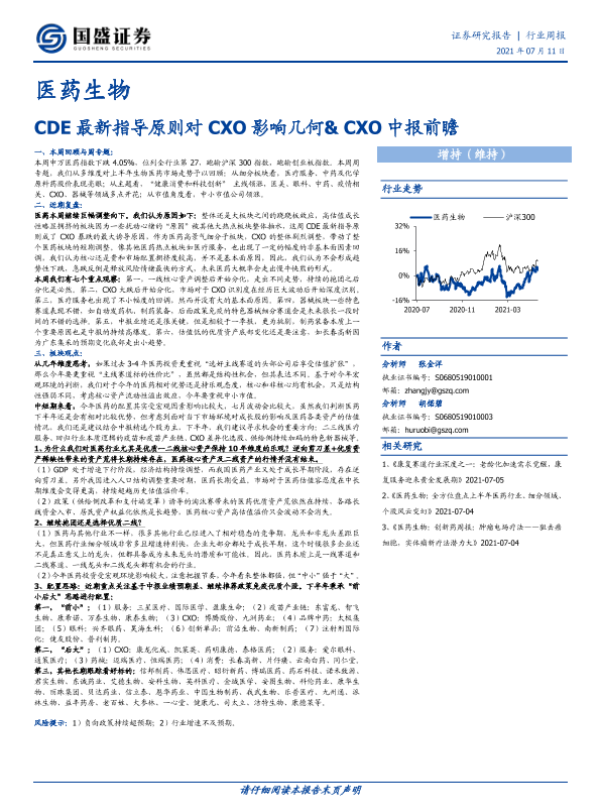 【国盛证券】【20210711】医药生物行业周报:CDE最新指导原则对CXO影响几何&CXO中报前瞻-20页 行业研究