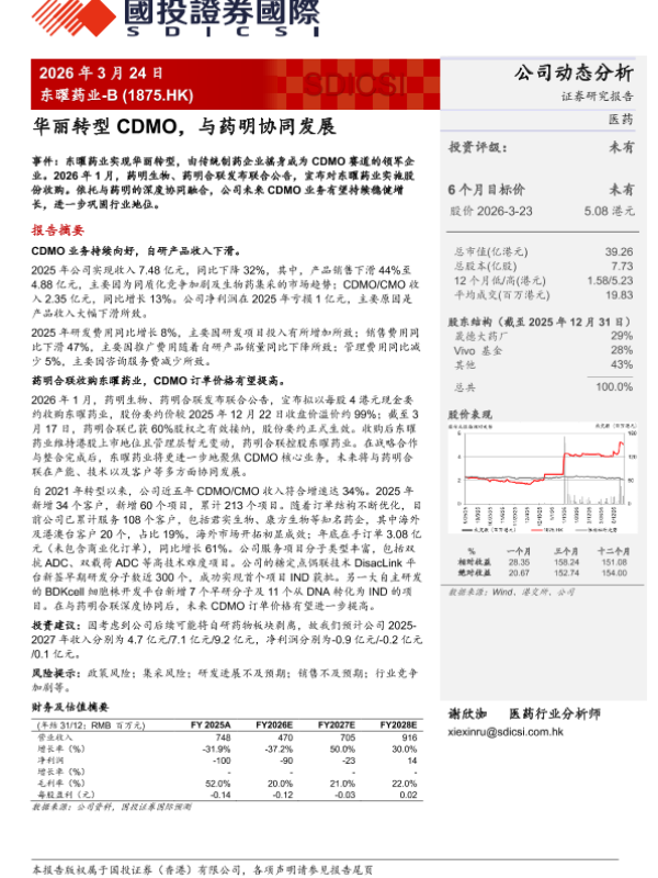 【国投证券(香港)有限公司】【202603】华丽转型 CDMO,与药明协同发展-3页 证券期货研究报告