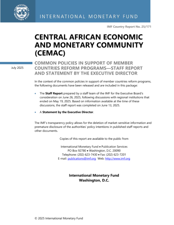 【国际货币基金组织】【202506】CENTRAL AFRICAN ECONOMIC AND MONETARY COMMUNITY (CEMAC) COMMON POLICIES IN SUPPORT OF MEMBER COUNTRIES REFORM PROGRAMS—STAFF REPORT AND STATEMENT BY THE EXECUTIVE DIRECTOR-64页 政策文件