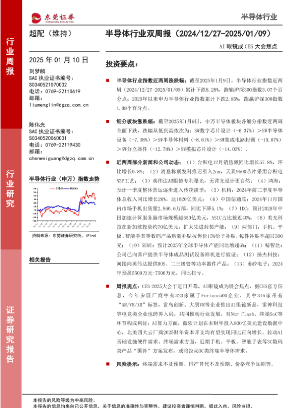 【东莞证券】【20250110】20250110-东莞证券-半导体行业双周报:AI眼镜成CES大会焦点-13页 行业研究