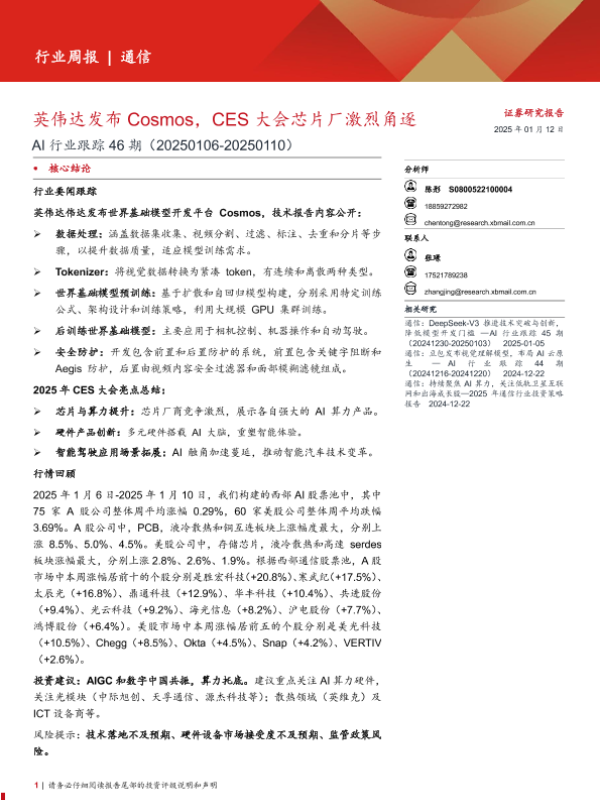 【西部证券】【20250112】AI行业跟踪46期:英伟达发布Cosmos,CES大会芯片厂激烈角逐-11页 行业研究