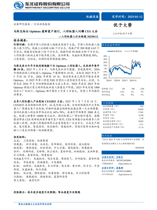 【东北证券】【20250112】马斯克给出Optimus最新量产指引,人形机器人闪耀CES大会---人形机器人行业跟踪-12页 行业研究