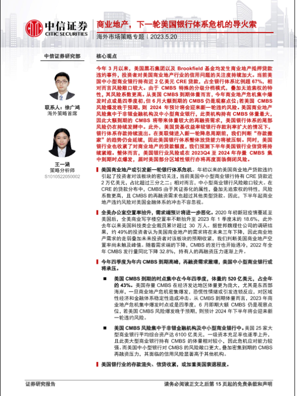 【中信证券】【20230520】海外市场策略专题:商业地产,下一轮美国银行体系危机的导火索-16页 行业研究