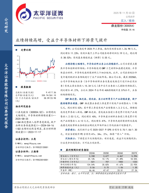 【东吴证券】【202511】2025年三季报点评:业绩持续增长,看好CMP龙头平台化布局-3页 证券期货研究报告