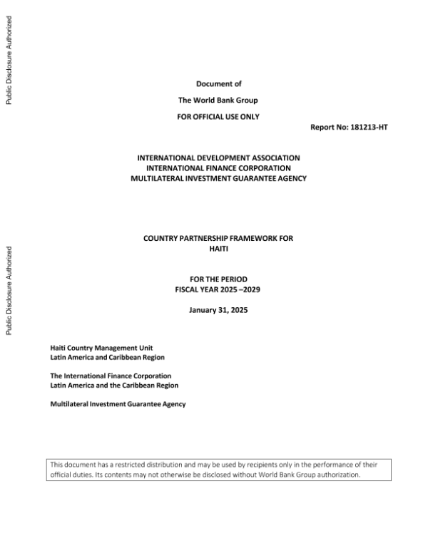 【The World Bank Group】【20250131】Haiti - Country Partnership Framework for the Period FY25-FY29-101页 政策文件