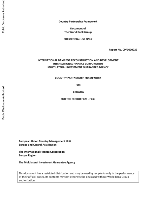 【The World Bank Group】【2025】Country Partnership Framework for Croatia for the Period FY25-FY30-100页 政策文件