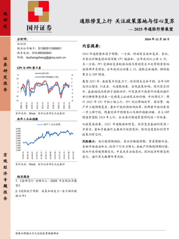 【国开证券】【20241230】2025年通胀形势展望:通胀修复上行,关注政策落地与信心复苏-23页 宏观策略