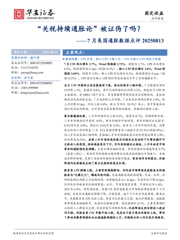 【华安证券】【20250813】7月美国通胀数据点评_关税持续通胀论_被证伪了吗-8页 证券期货研究报告