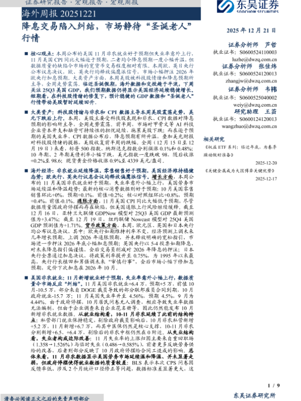 【东吴证券】【202512】海外周报 20251221 降息交易陷入纠结,市场静待“圣诞老人” 行情-9页 证券期货研究报告