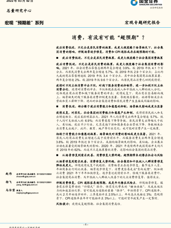 【国金证券】【20220302】宏观专题研究报告:消费,有没有可能“超预期”?-16页 行业研究