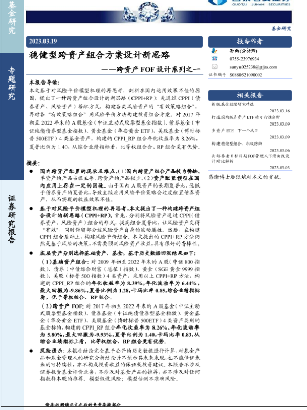 【国泰君安证券】【20230319】稳健型跨资产组合方案设计新思路——跨资产FOF设计系列之一-24页 行业研究