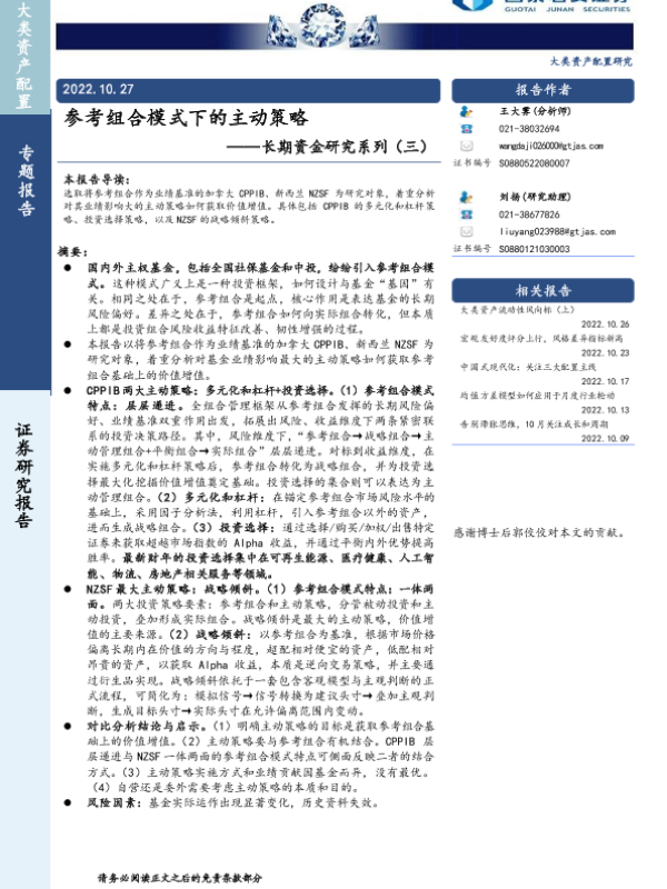 【国泰君安证券】【20221027】参考组合模式下的主动策略——长期资金研究系列(三)-20页 行业研究