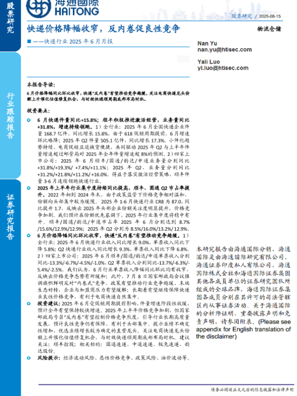 【海通国际】【202508】快递价格降幅收窄,反内卷促良性竞争-18页 证券期货研究报告