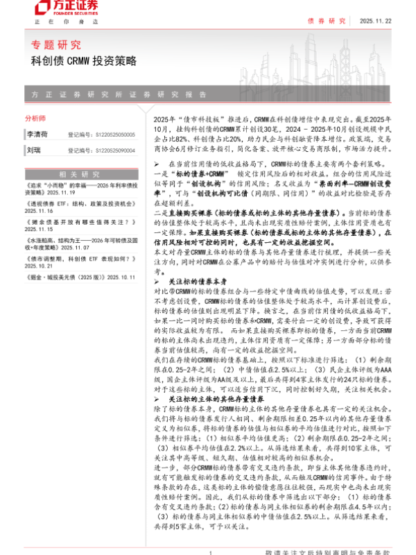 【方正证券】【202511】科创债CRMW投资策略-13页 证券期货研究报告