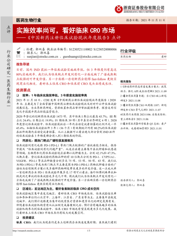 【浙商证券】【20211111】中国新药注册临床试验现状年度报告点评-3页 行业研究