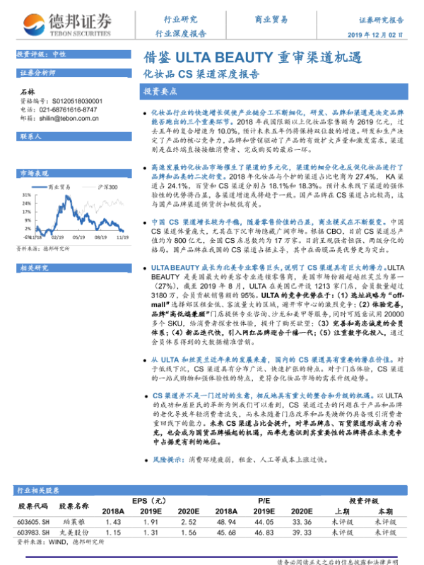 【德邦证券】【20191202】化妆品CS渠道深度报告:借鉴ULTA BEAUTY重审渠道机遇-21页 行业研究