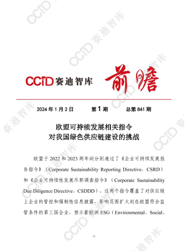 【赛迪研究院】【20240102】欧盟可持续发展相关指令对我国绿色供应链建设的挑战-8页 行业研究