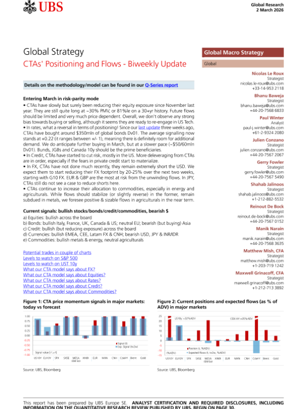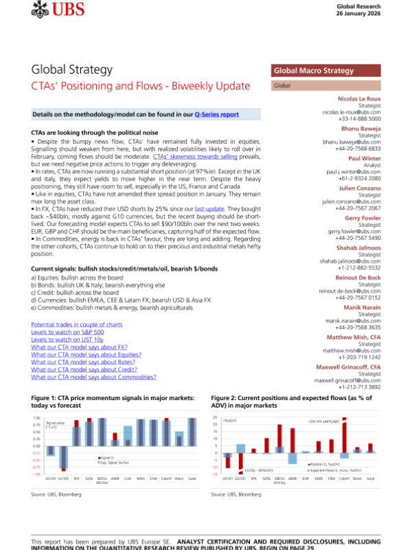 【UBS】【202602】Global Strategy CTAs' Positioning and Flows - Biweekly Update-33页 证券期货研究报告