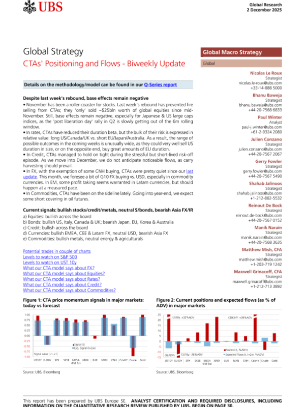 【UBS】【202508】Global Strategy CTAs' Positioning and Flows - Biweekly Update-33页 证券期货研究报告