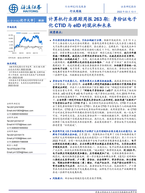【海通证券】【20220313】计算机行业跟踪周报263期:身份证电子化CTID与eID的现状和未来-8页 行业研究