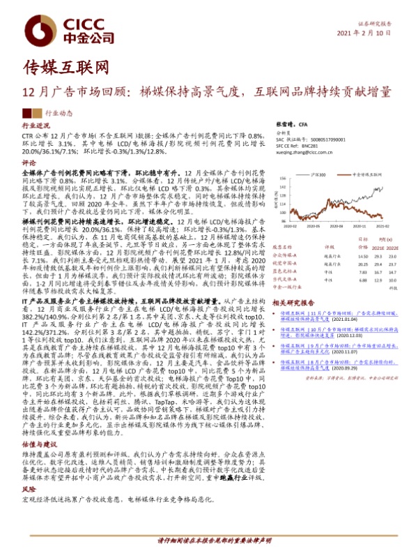 【中金公司】【20210210】传媒互联网12月广告市场回顾:梯媒保持高景气度,互联网品牌持续贡献增量-7页 行业研究