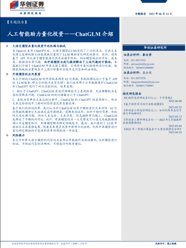 【华创证券】【20230614】ChatGLM助力量化选股-28页 行业研究