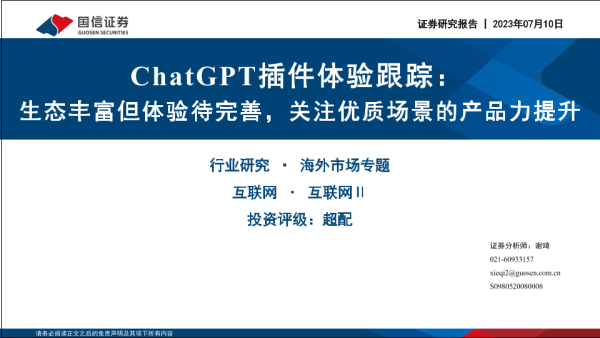 【国信证券】【20230710】ChatGPT插件体验跟踪:生态丰富但体验待完善,关注优质场景的产品力提升-37页 行业研究
