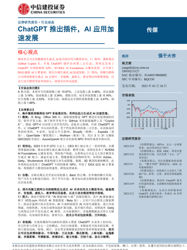 【中信建投证券】【20230326】传媒行业动态:ChatGPT推出插件,AI应用加速发展-30页 行业研究