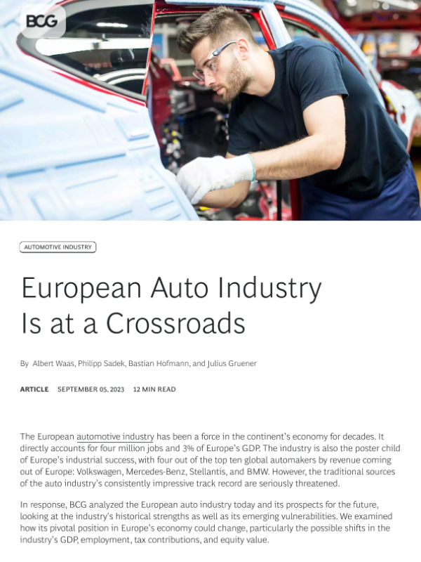 【Boston Consulting Group】【20230905】European Auto Industry Is at a Crossroads-10页 行业研究