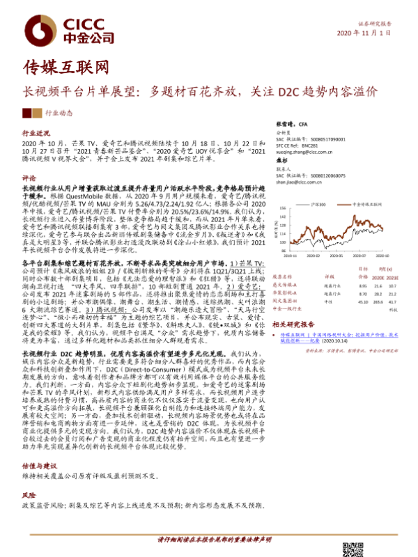 【中金公司】【20201101】传媒互联网行业:长视频平台片单展望:多题材百花齐放,关注D2C趋势内容溢价-8页 行业研究
