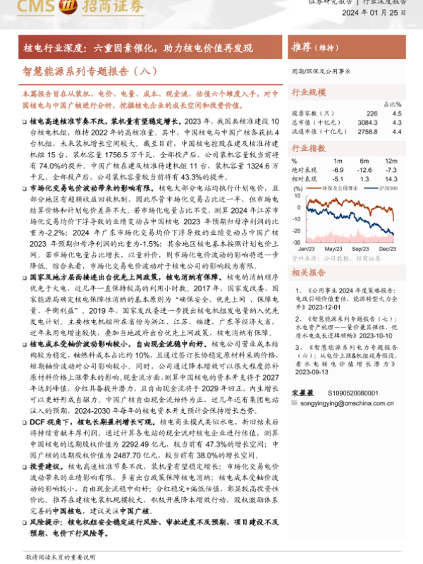 【海通证券】【20240125】智慧能源系列专题报告(八):核电行业深度:六重因素催化,助力核电价值再发现-21页 行业研究