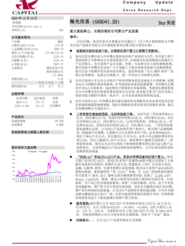 【群益证券 ( 香港 ) 有限公司】【202512】重大重组终止_长期仍看好公司算力产业发展-3页 证券期货研究报告