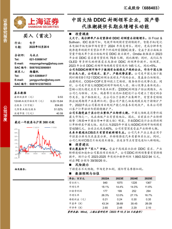 【上海证券】【20231025】中国大陆DDIC封测领军企业,国产替代浪潮提供长期业绩增长动能-26页 行业研究