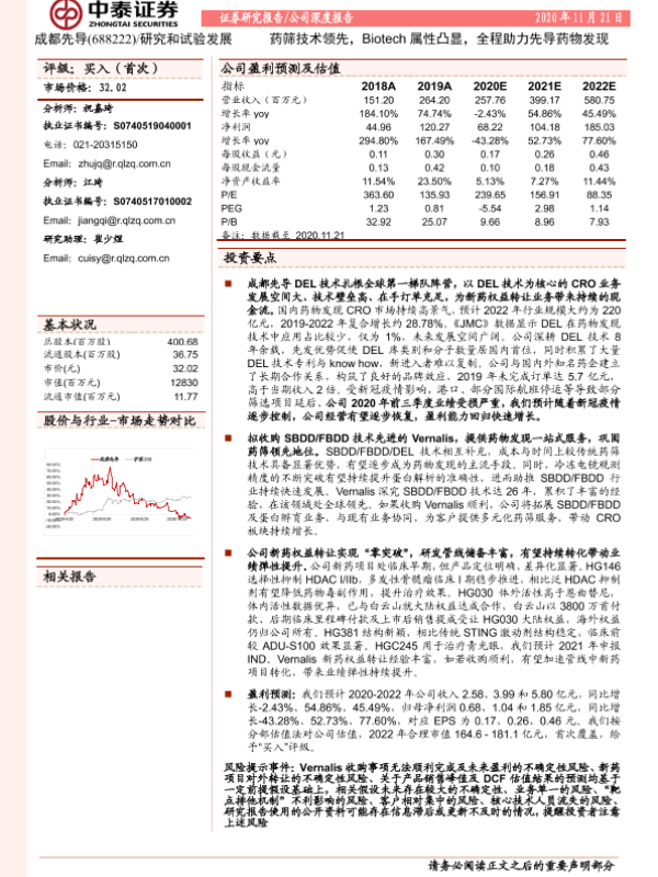 【中泰证券】【20201121】成都先导-688222.SH-药筛技术领先,Biotech属性凸显,全程助力先导药物发现-43页 行业研究