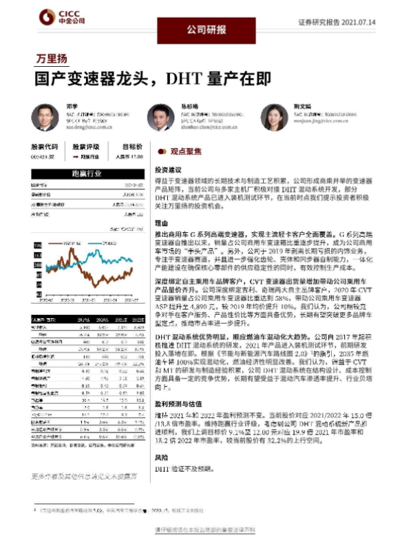 【中金公司】【20210714】国产变速器龙头,DHT量产在即-21页 行业研究