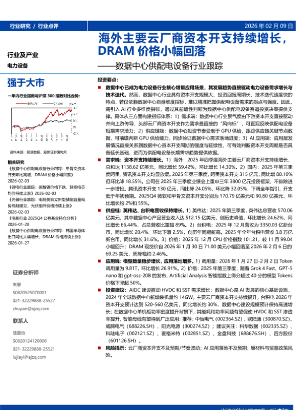 【爱建证券】【202602】数据中心供配电设备行业跟踪:海外主要云厂商资本开支持续增长,DRAM价格小幅回落-15页 证券期货研究报告