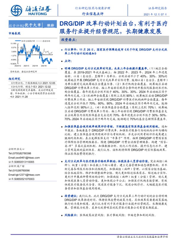 【海通证券】【20211207】DRG DIP改革行动计划出台,有利于医疗服务行业提升经营规范,长期健康发展-2页 行业研究
