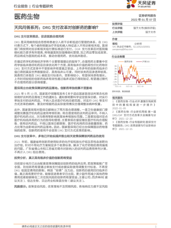 【天风证券】【20220107】天风问答系列:DRG支付改革对创新药的影响-9页 行业研究