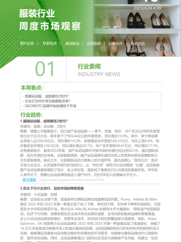 【艾瑞咨询】【20230430】2023年第18周:服装行业周度市场观察-7页 行业研究
