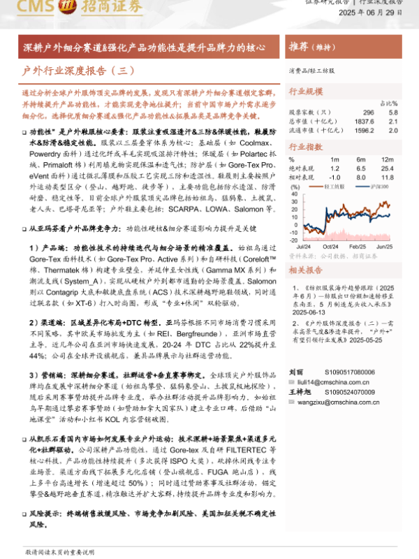 【海通证券】【20250629】户外行业深度报告(三):深耕户外细分赛道&强化产品功能性是提升品牌力的核心-24页 证券期货研究报告