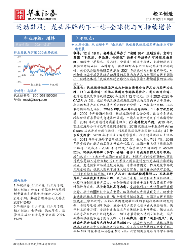 【华安证券】【20211227】20211227-华安证券-轻工制造行业周报:运动鞋服:龙头品牌的下一站-全球化与可持续增长-34页 行业研究