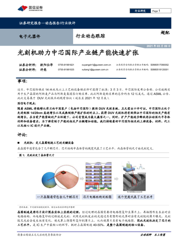【国信证券】【20210309】电子元器件行业动态跟踪:光刻机助力中芯国际产业链产能快速扩张-7页 行业研究