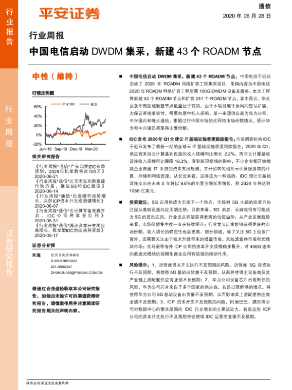 【平安证券】【20200628】通信行业周报:中国电信启动DWDM集采,新建43个ROADM节点-5页 行业研究
