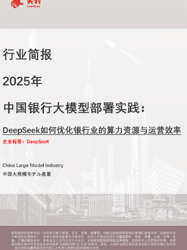 【头豹研究院】【2025】2025年中国银行大模型部署实践:DeepSeek如何优化银行业的算力资源与运营效率-10页 行业研究