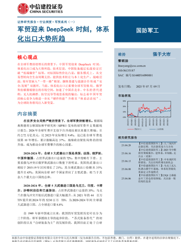 【中信建投证券】【20250709】国防军工行业军贸系列(一):军贸迎来DeepSeek时刻,体系化出口大势所趋-29页 证券期货研究报告