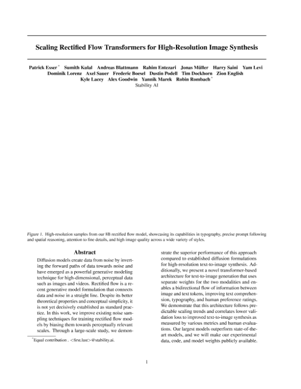 【Stability AI】Scaling Rectified Flow Transformers for High-Resolution Image Synthesis-28页 技术文档