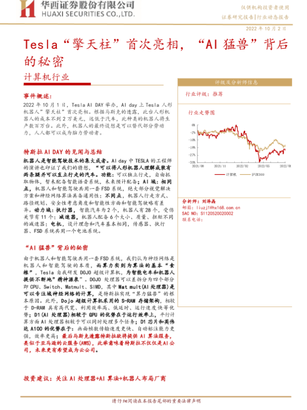【华西证券】【20221002】计算机行业:Tesla“擎天柱”首次亮相,“AI猛兽”背后的秘密-16页 行业研究