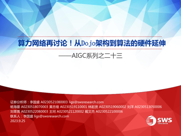 【申万宏源】【20230925】算力网络再讨论!从Dojo架构到算法的硬件延伸-39页 行业研究