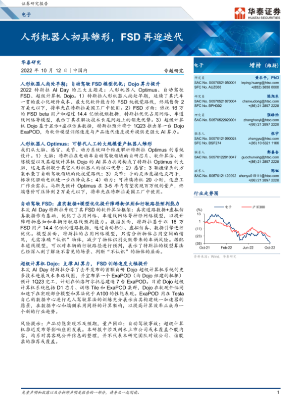 【华泰证券】【20221012】电子专题研究:人形机器人初具雏形,FSD再迎迭代-13页 行业研究