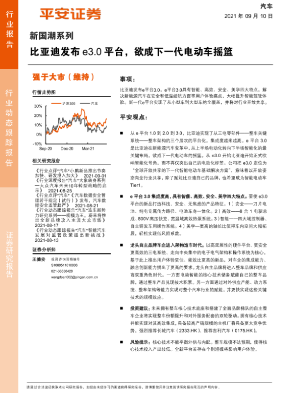 【平安证券】【20210910】新国潮系列:比亚迪发布e3.0平台,欲成下一代电动车摇篮-10页 行业研究